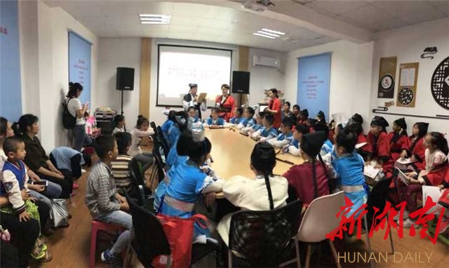 湖南日报新湖南客户端6月1日讯(记者王晗 通讯员 谭云梦)庆六一就是唱歌跳舞?“凡是人,皆须爱,天同覆,地同载……”今天,长沙市雨花区赤岗社区一片6栋传出《弟子规》的朗朗书声。这是该社区“巳申文化活动室”暨新“四点半课堂”的启动现场,为社区小朋友们带来的一场国学盛宴。