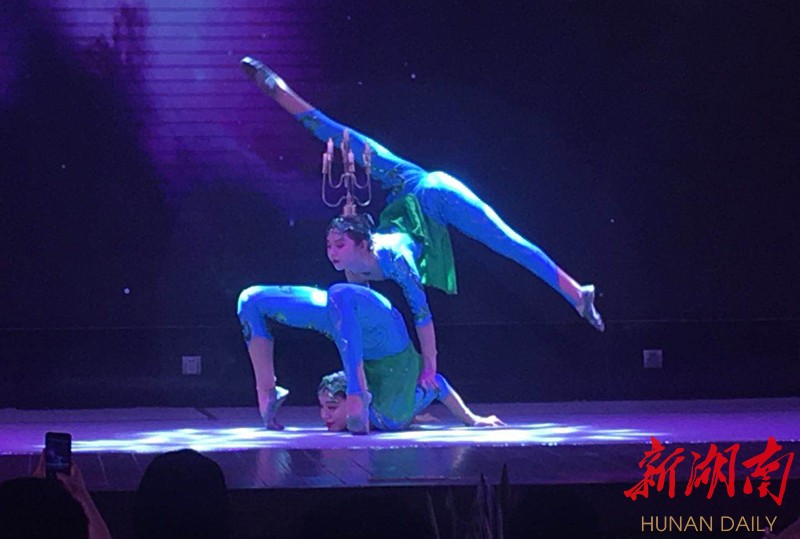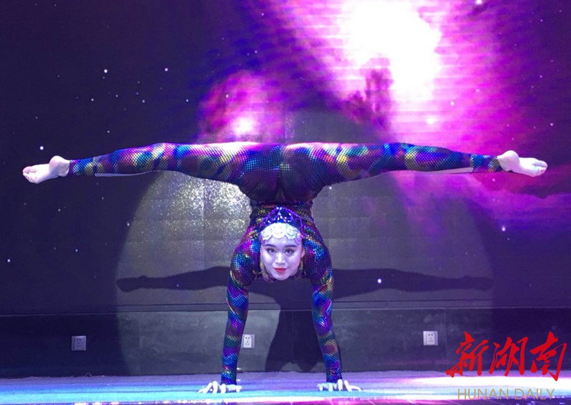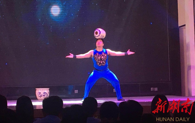 6月1日上午,中国杂技团首次走进岳阳,在岳阳首家五星级酒店岳阳大酒店做了专场演出。作为古老的艺术,杂技穿越时空,将无穷魅力展示在岳阳市民面前。
