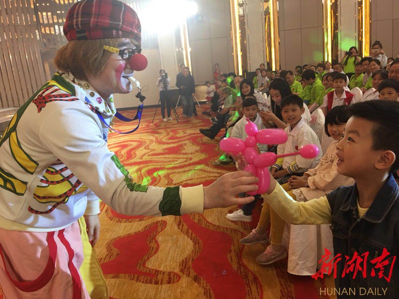 在杂技专场演出中,滑稽节目是众多惊险节目大餐的“前菜”和“调味品”,表演形式多种多样。该团著名滑稽表演艺术家王龙以风趣、幽默、搞笑著称,开场便给孩子们现场制作并送上了节日礼物,其表演逗得全场观众捧腹大笑。