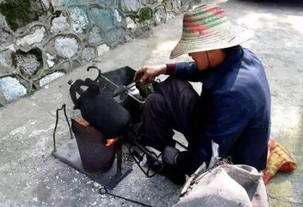 10、“有坛子、脸盆、漱口杠子要补滴冒?”从前,谁家的铁锅坏了,拿出来;长沙补锅匠支起小火炉,拉起风箱,化上铁水,片刻时间补好的锅就能烧菜了!