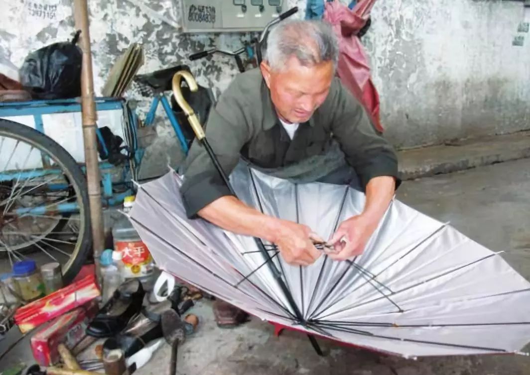 12、“修伞不唻~修布伞雨伞塑料伞啦!”现在家里有伞坏了,大多也只好扔了买新的。而从前,修伞匠在长沙还是一个挺热门的行当。只是现在却开始慢慢消失,长沙少有的修伞师傅,也感叹这门手艺怕是要失传了。
