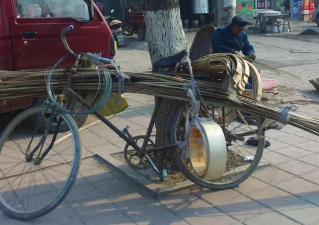 13、“扎簸~箕……”,扎制竹器的都是一些民间的手艺人,他们挑着一副挑子沿街吆喝,挑子上立着一根根细竹竿和削好的篾子。