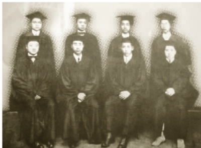↑1917年,雅礼大学本科第一班毕业生。(后排左起:文南斗、欧阳峙、劳启祥、张君俊;前排左起:陈乃勋、刘南山、华楚书、黄涛)