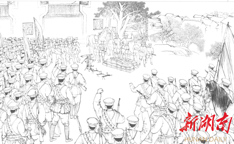 彭德怀和一团在天岳书院前誓师起义。