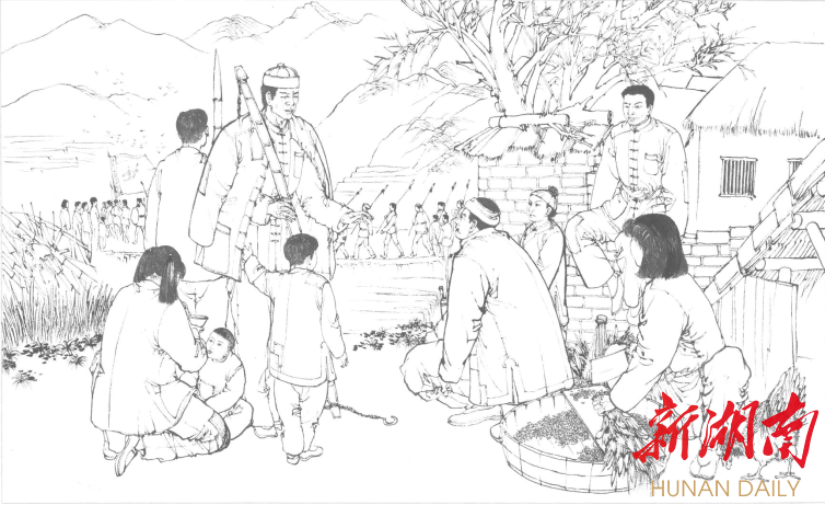 记者也多次去过平江,惊奇地发现,这本连环画将将平江地方的风土人情、民俗美景都囊括其中。比如平江人嫁女儿四杠诗书的陪嫁、“平江情席十大碗”及幕阜山、福寿山等风景名胜等。连环画里还引用了彭德怀的诗句及红军战士在月光岩上刻下的诗句。