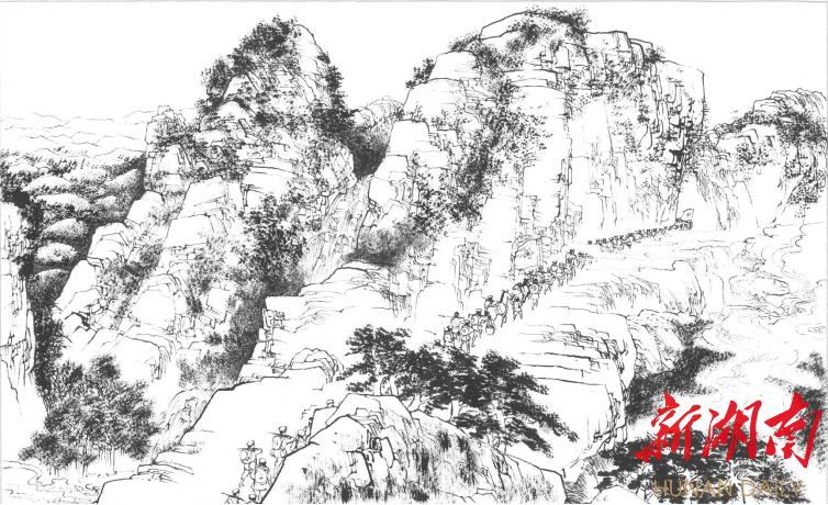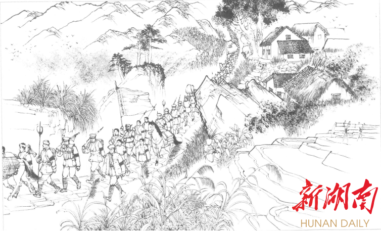 陈佑臻告诉记者,连环画将平江起义前后进行了延展,点到了马日事变,描绘了三月扑城,往后又延伸到了二上井冈山,转战湘鄂赣,直到再战平江,攻克长沙。他为此通读了平江起义前后湖南人民革命史和平江人民革命史,查阅了很多历史人物的传记和回忆录,做了十几万字的笔记。与此同时,还多次到平江实地考察走访,掌握了重大历史事件的第一手资料。在故事讲述时,用小故事、小情节累积大事件的悬念,增强人物的感染力,凸显场景的画面感。虽然主线是按照时间顺序展开的,但是表现手法上却采用了《水浒传》的模式,让一个人物带出另一个人物的串珠式出场。