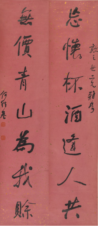 题识:忘怀杯酒逢人共,无价青山为我赊