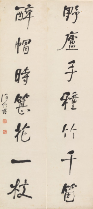 题识:故庐手种竹千个,醉帽时篸花一枝