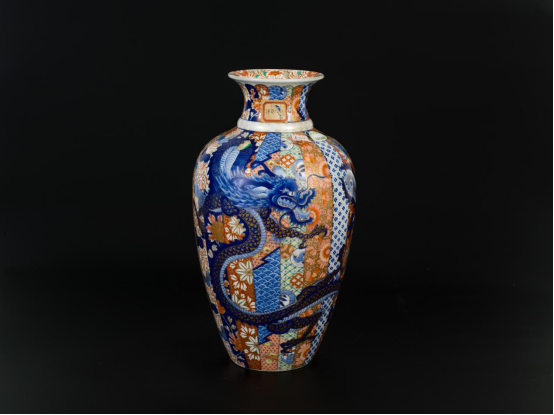 另外,此批文物商店旧藏中还有一些珍贵的瓷器。此件日本彩龙纹瓶,高38厘米,瓶撇口,长弧腹,圈足。瓶身彩饰,巨龙盘旋,其雄伟之姿若隐若现。值得一提的是,这是当年日本的西村一作和森峰一送给本溪县第一任知县周朝霖的赠礼。