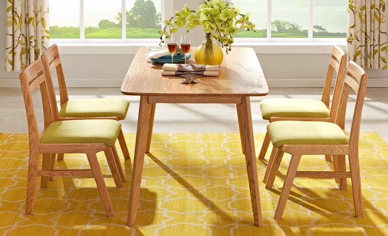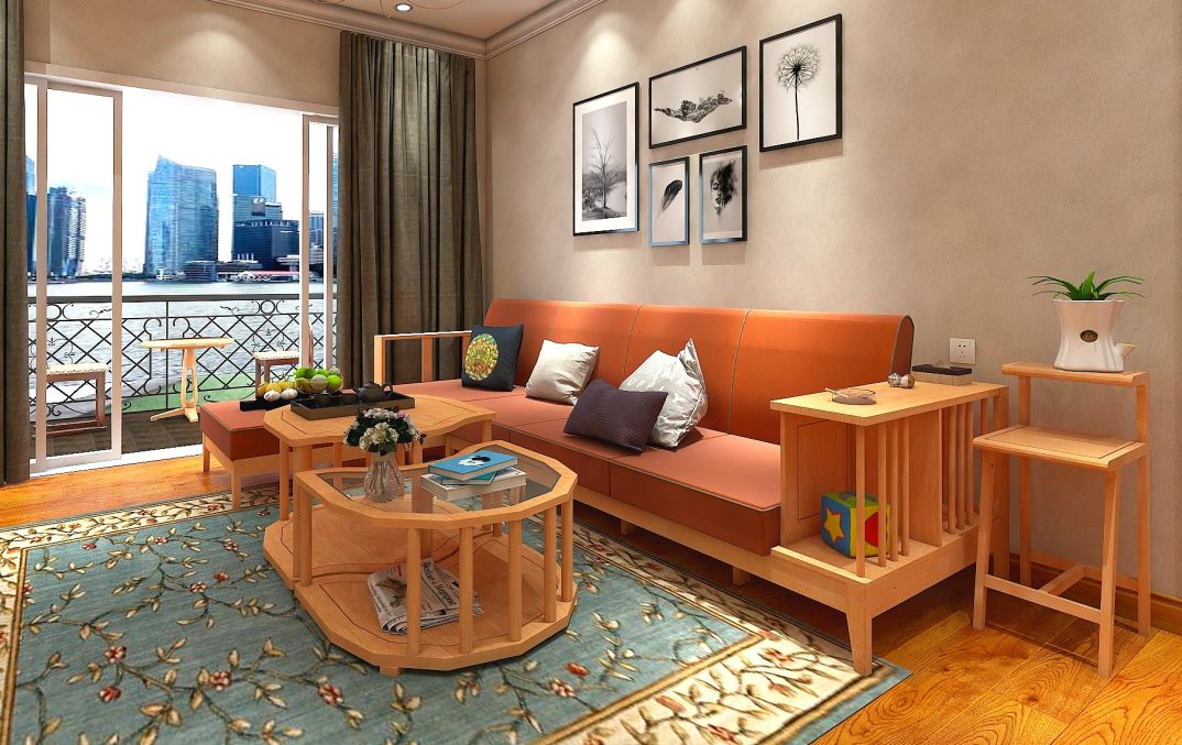 橘黄色+原木色是设计中最常应用的配色组合,以原木色作为主基调,搭配橘黄沙发或地毯,清醇爽洁的色调带来轻松愉悦感。