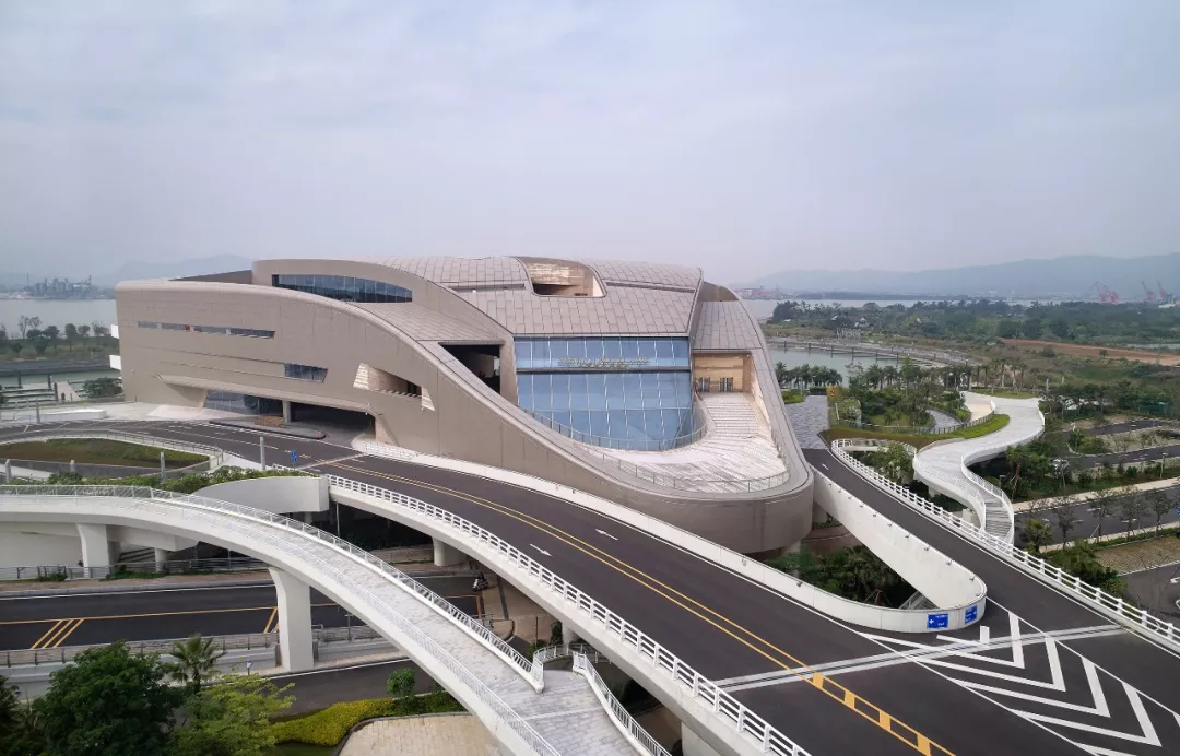 为迎合现代快艇与游艇在外观上所运用的颜色、材质和工艺, 俱乐部大楼的立面采用了青铜色铝面板。这种青铜色调是海船的常用色调,更加突出了整座建筑几何外形的柔和与流畅。