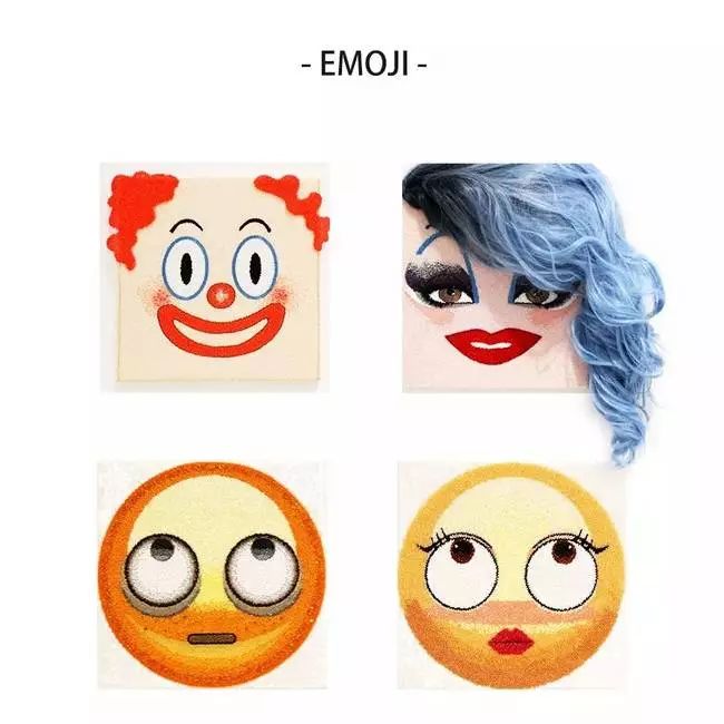 emoji表情包也被当作创作的素材。揭露在智能化越来越普遍的现代社会,人们依赖它所带来的便捷和包容的同时,也十分享受它们带来的假象。