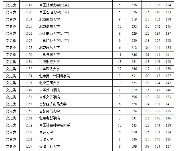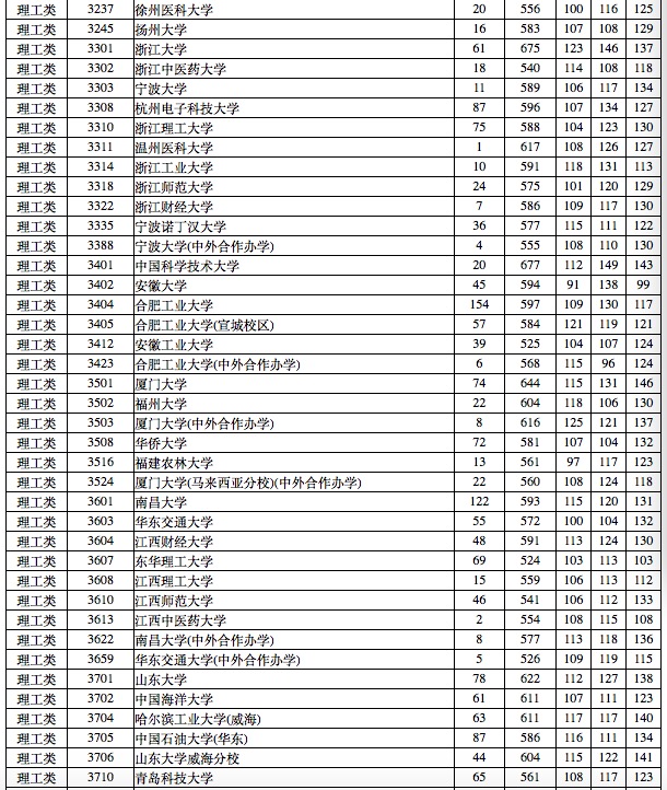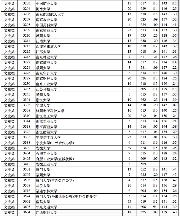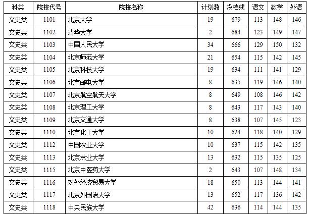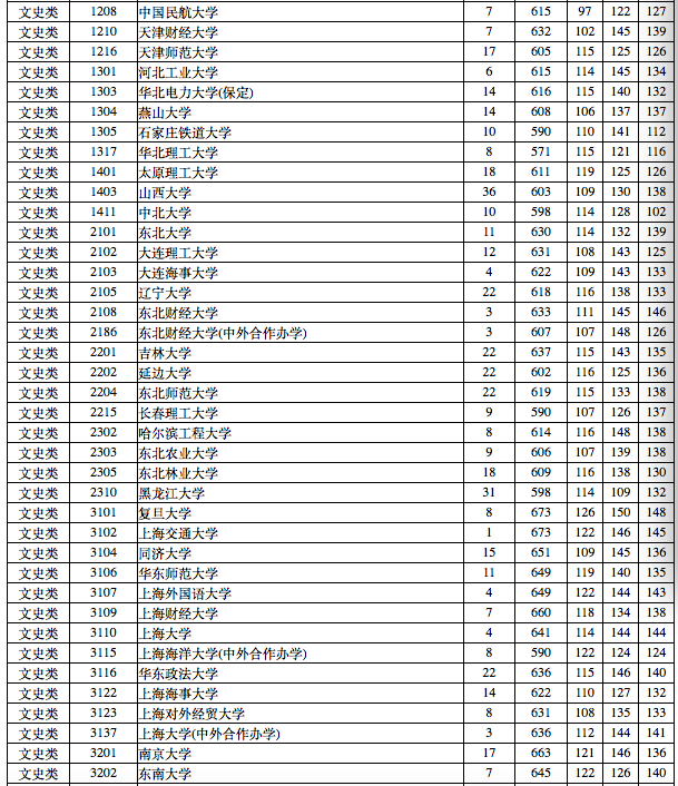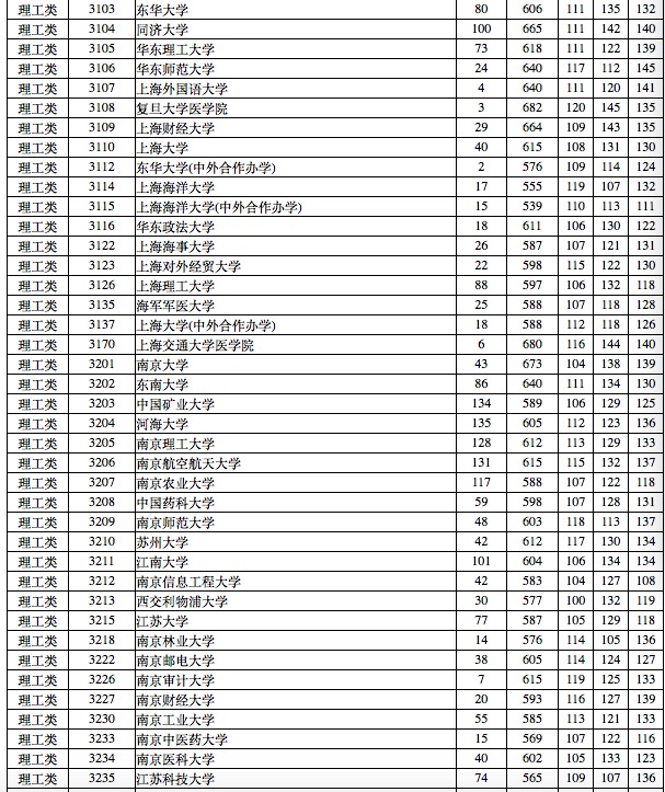 从公布的投档线来看,全国文科前五位的高校分别是:清华大学684分,北京大学679分,复旦大学和上海交通大学均为673分,中国人民大学666分;全国理科前五位的高校则是:北京大学694分,清华大学693分,复旦大学689分,上海交通大学688分,北京大学医学部687分。