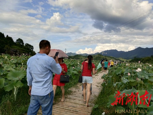 国家级贫困村插柳村是以苗族为主的村寨。2015年以来,湖南师范大学对口帮扶该村。据悉,举办荷花节,目的是搭建起“农业+旅游+扶贫”平台,让荷花成为推动插柳村域经济发展、百姓发家致富的又一重要引擎。