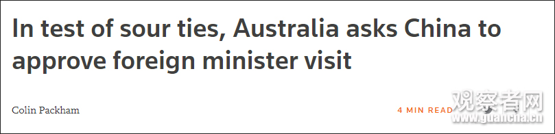 路透社报道称,澳方的这一请求凸显出两个贸易伙伴间的紧张关系。已有2年多未访华的毕晓普,希望能在2018年访问中国,参加两国自2014年以来就举办的外交与战略对话。