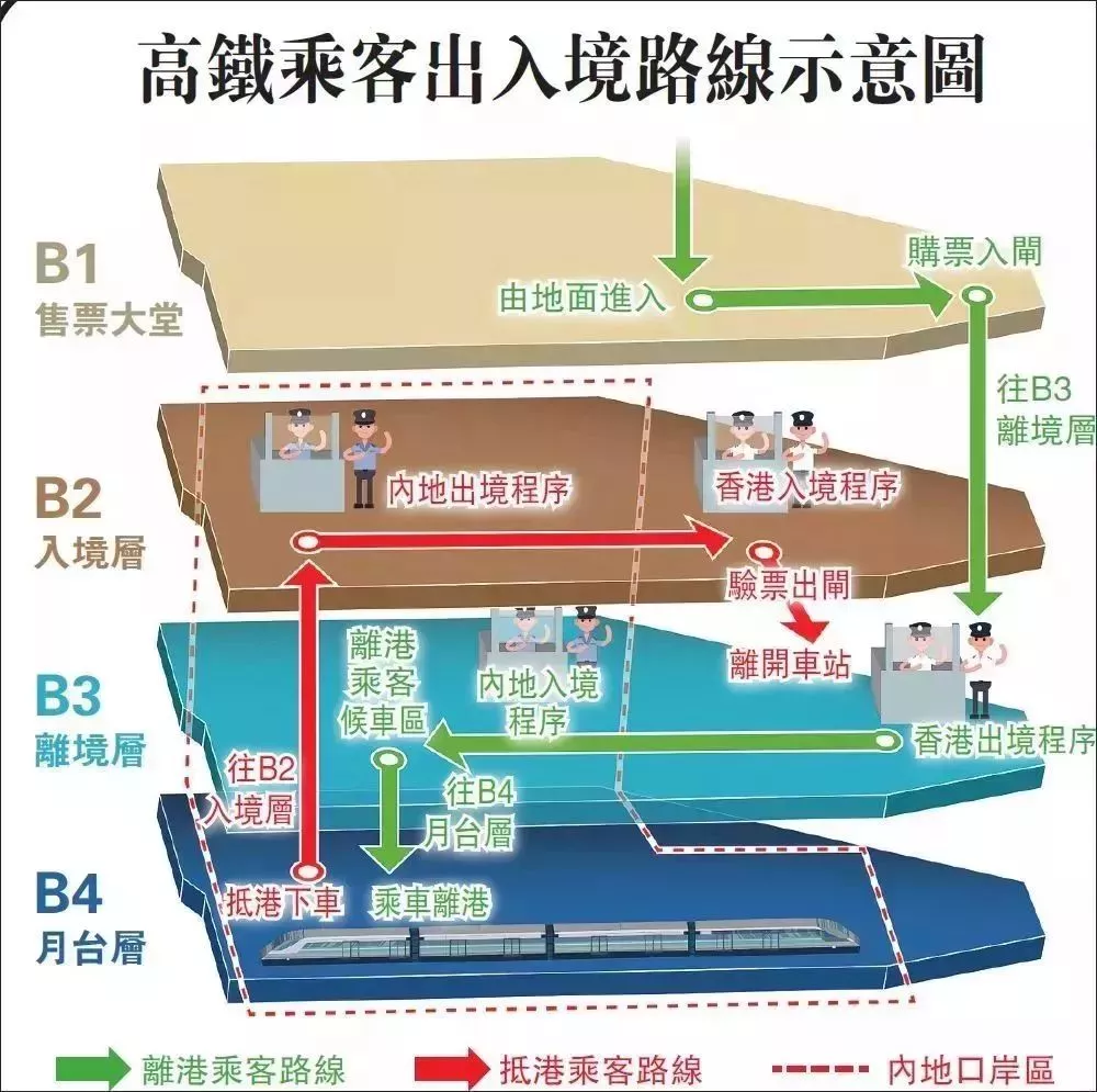 广深港高铁将在西九龙站,同一层设“内地口岸区”和“香港口岸区”,实施“一地两检”。