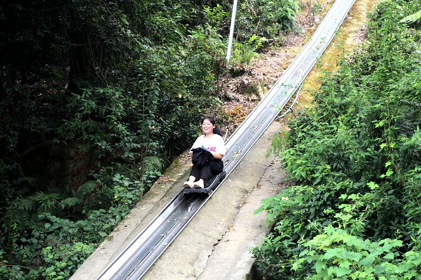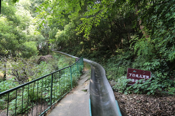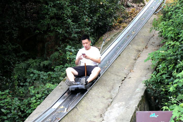 上滑道之前,每个人都会有一个专属滑车。滑车通过上下拉动把手控制刹车,确保与相邻游客的安全距离。在高温下穿梭岳麓山林之间,呼吸每立方厘米1000个以上的负氧离子,曲折迂回,惊险刺激,就像是在丛林美景中进行时空穿梭,感觉就像是哆啦A梦的时光机!