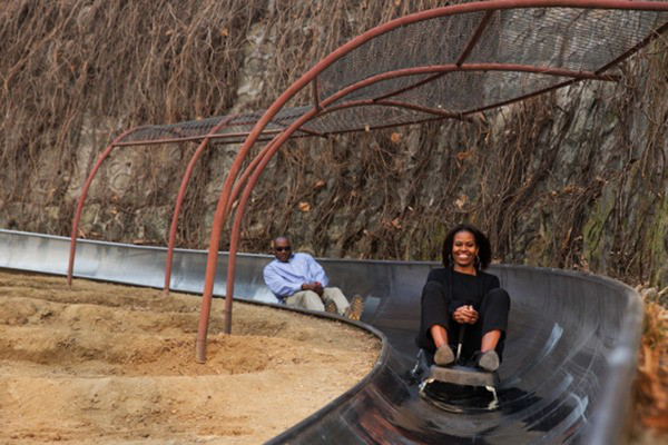 滑道的魅力有多大?看这张图就知道了。美国前总统夫人米歇尔曾坐滑道游览北京慕田峪长城景区。现在在岳麓山,花35元就能体验到和总统夫人同样的乐趣。
