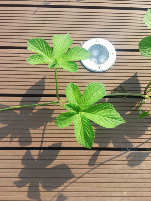 它的叶片长得像人的手掌,茎、枝、叶柄长着倒钩刺。