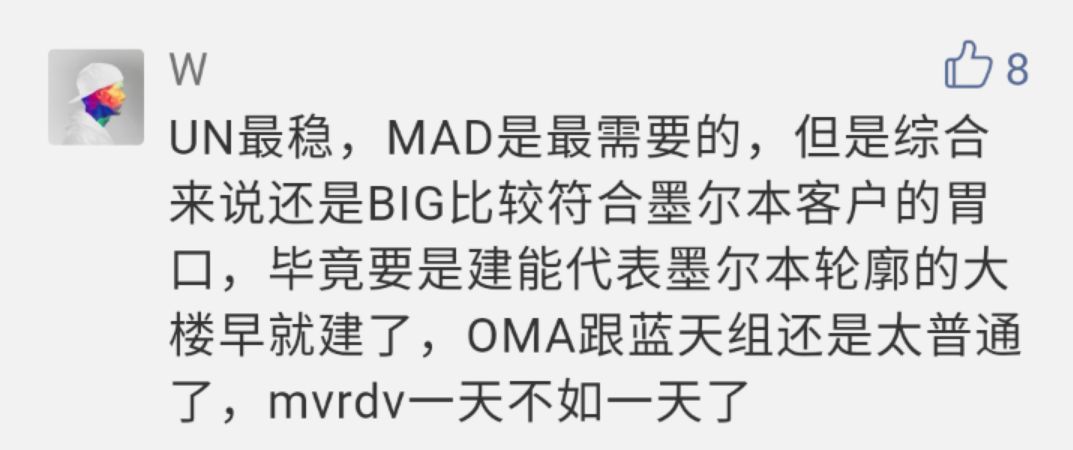 入围最后一轮竞标的是国际上的明星事务所,包括丹麦的BIG、中国的MAD、奥地利的蓝天组、还有荷兰的OMA、MVRDV。