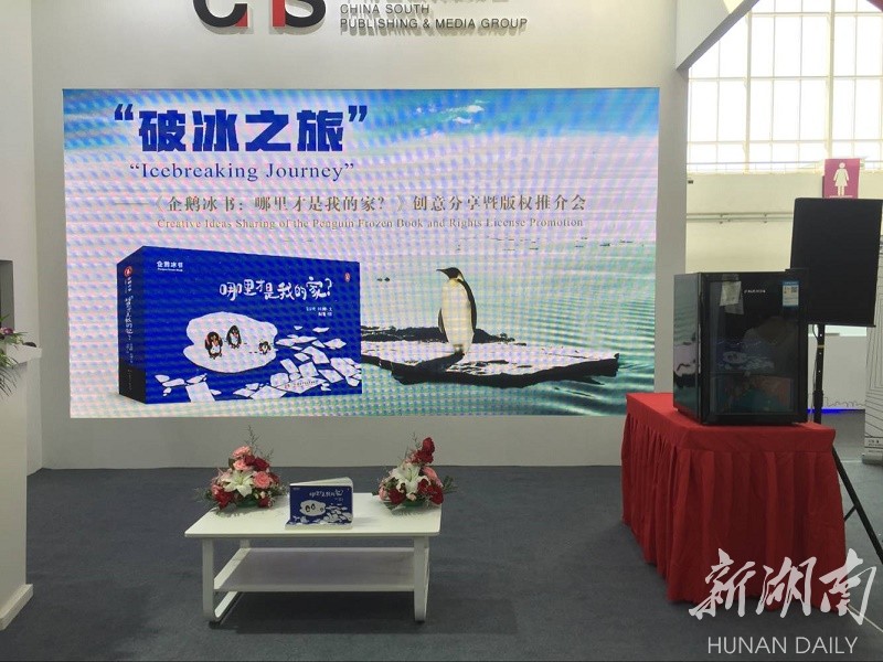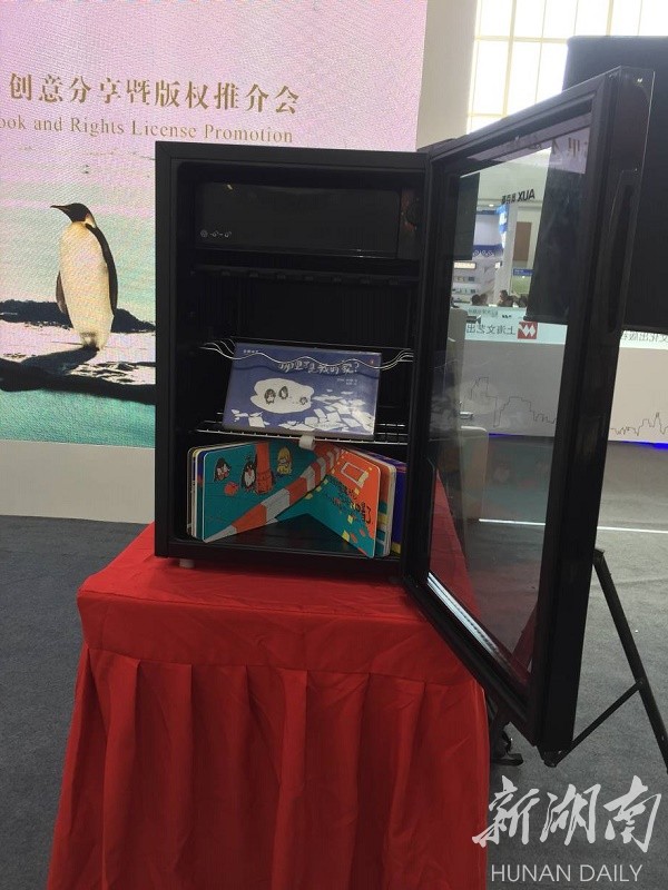 新湖南客户端8月23日讯(记者 易禹琳)今天下午,在第25届北京国际图书博览会(BIBF)湖南展馆,一本躺在冰箱里的童书吸起了人们的好奇。它的名字叫《企鹅冰书:哪里才是我的家?》,它必须在冰箱里冰冻15分钟才能阅读,拿出来,当温度升高到21摄氏度,图片和文字完全消失不见。通过视频播放与实物演示,在场观众都见识到了“冰书”神奇的一面,纷纷惊叹不已。