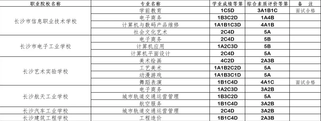 8月2日-3日,长沙市城区第四批、第五批高中招生学校(职业院校)为:长沙市信息职业技术学校、长沙航天工业学校、长沙电子工业学校、长沙艺术实验学校、长沙汽车工业学校、长沙建筑工程学校等65所院校。