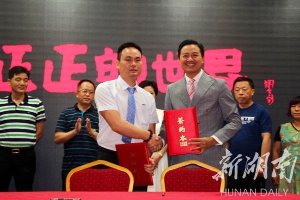随后,湖南砚泉文化传媒有限公司董事长文祥与湖南一帆顺影视传媒有限公司总经理丁劲签署了战略合作协议。