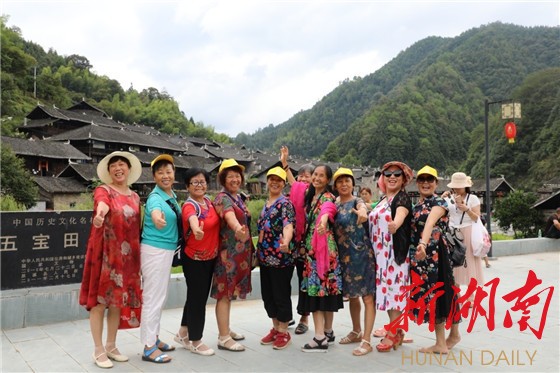 湖南日报·新湖南客户端8月20日讯(杨剑 郭泽华)作为2018中国·辰溪第二届稻花鱼文化节“大美辰溪”自驾游活动的最后一站,8月18日,上蒲溪瑶族乡五宝田村村民身穿瑶族盛装,喜迎来自广州、长沙、怀化等省内外300余名游客。