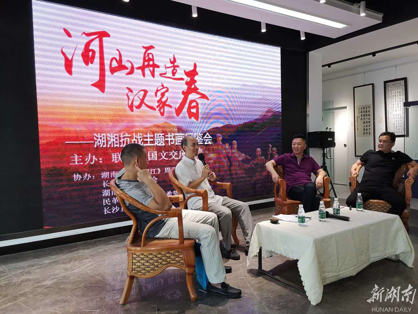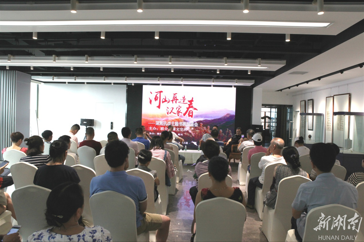 新湖南客户端9月15日讯(记者 王铭俊 通讯员 李林英 王梦娜)今日上午,联合利国文化产权交易所 “河山再造汉家春”湖湘抗战主题书法作品展开幕式暨品鉴会在新湖南大厦24楼成功举行。湖南日报《湘江》周刊主编、湖南省作协副主席龚旭东,国学名师彭晓方以及长沙市收藏协会副主席彭磊、王国良、乐兵,湖南老兵之家执委佘树忠、郑鹏等人出席本次展览开幕式。