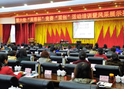 2012年11月,省总工会女职工委员会在长沙举办第六轮“芙蓉杯”竞赛“双创”活动培训暨风采展示赛。共有 30 个先进女职工班组参加“我的岗位• 我的风采”—— 五一巾帼奖争创班组风采展示赛,20 名先进女职工参加“最美芙蓉花”——五一巾帼奖争创个人风采展示赛。在展示赛中取得优异成绩的10个班组和10名女职工被省总工会授予第六轮“芙蓉杯”竞赛全省五一巾帼奖先进集体和先进个人称号。