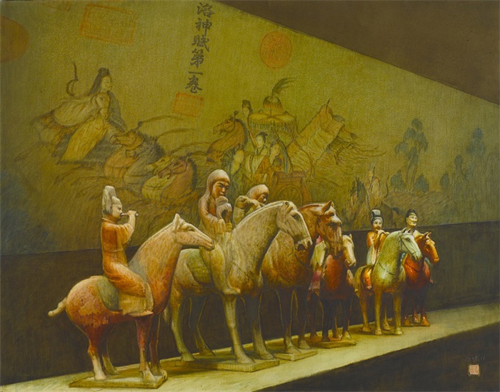 殷老师的画无疑看起来是现实主义、写实主义的,要把现实主义和写实主义做到有高度、有深度的话,那么对物象之理的理解、它的结构和规律的理解,必须要达到一个很高的深度,才能表现的不会慌乱、不是一种表象。无论他画的人物也好、静物也好、风景也好,可以看到他对理和规律的理解,可以看到是一种结构的东西。另外,由于对理的高度的重视和理解,也是对象的把握有一个更高的层次,这个象包括两个层面,一个是物象,我们看到物象非常生动、非常多姿多彩,还有一个意象,我们可以看到对中国画的意象的高妙。