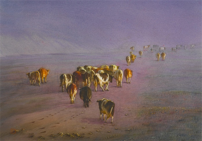 我们唐代有王昌龄的边塞诗,我们殷老师的画叫边塞水彩画,充满着激情,我最喜欢他的这些画。他的边塞水彩画,不但是一种苍凉感,我觉得还有一种壮烈感,还有灌输着艺术家的热情,艺术家的赤诚之心都是体现在他的作品中,真的是特别能够打动人。