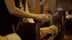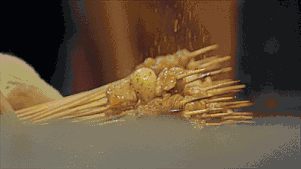 “牛油,牛胸口部位,也就是胸口油,切成小块加入秘制调料腌制入味,串成小串不多不少一口一串,只有用炭火才是对烧烤最大的尊重。
