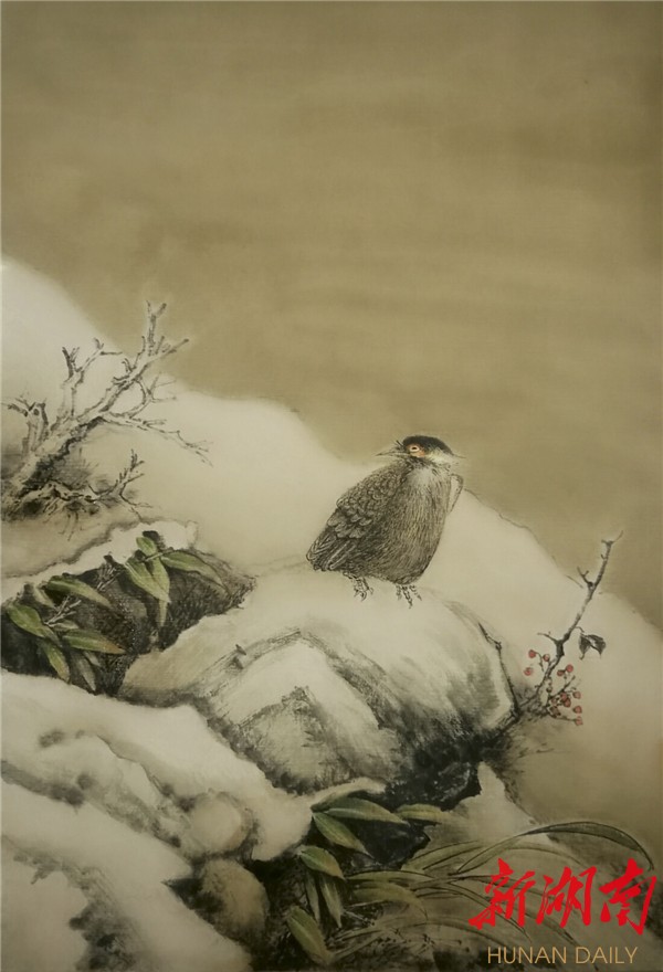 这让人想起了南宋画家李迪的名作《雪树寒禽图》,太平先生没有像李迪那样把雪画出来,也没有直露漫天雪花的场景,却隐笔尽显了凌冽的寒意,这种“此时无雪胜有雪”的笔法,可意会不可言传。