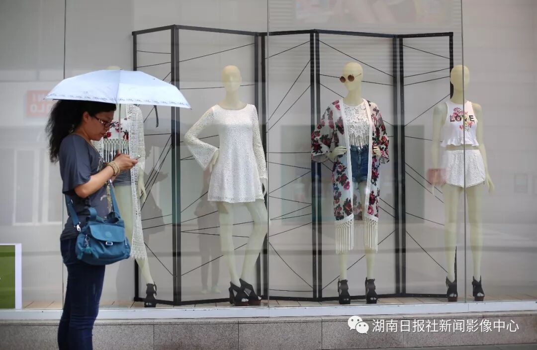 2015年4月28日,长沙坡子街悦方商场,橱窗内展示着夏日清凉服饰。郭立亮 摄