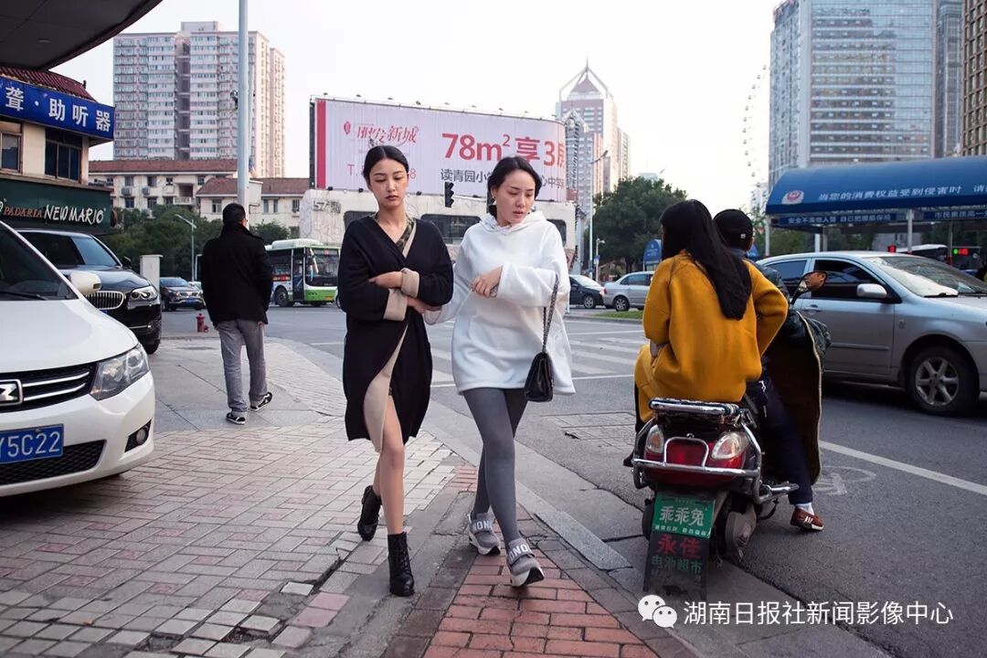 2016年11月2日,芙蓉中路二段,尽管天气寒冷,但阻止不了爱美的女士光腿穿短裙。毛尚文 摄