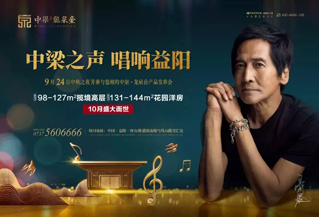 “中梁之声 唱响益阳”中梁·龙泉台产品发布会将于9月24日中秋之夜开幕,新中式产品将惊艳亮相!届时齐秦将空降发布会现场,与您一起共鉴经典!