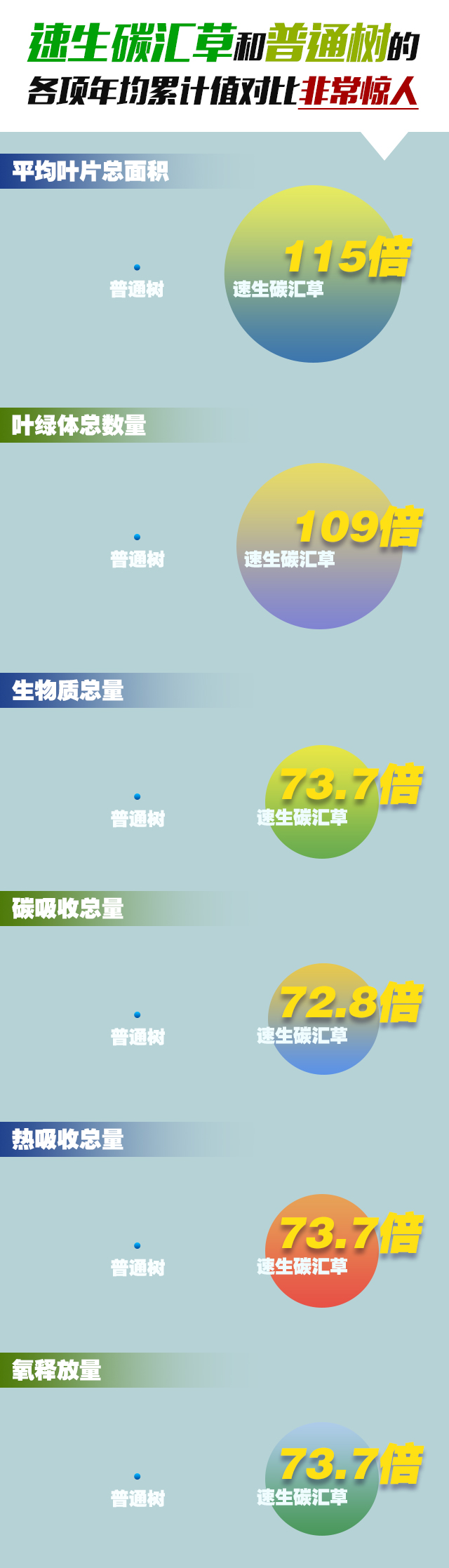 而经中国质量认证中心核算,速生碳汇草每亩每年净碳汇量为14吨。