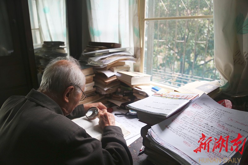 他有62年的党龄,一辈子致力于毛泽东思想研究、宣传与实践,著作等身;他94岁高龄,满头银发,每天仍笔耕不辍,坚持读书写文章8小时;他两袖清风,生活简单朴素,却两次捐献20万元给学校,成立奖学金以资助寒门学子……他就是湘潭大学哲学系退休教授沧南。