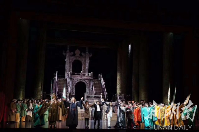湖南日报·新湖南客户端10月27日讯(记者 龙文泱 通讯员 周卉)10月26日至27日晚,普契尼全本歌剧《图兰朵》首次登录湖南,在长沙梅溪湖国际文化艺术中心大剧院上演,著名世界女高音歌唱家乔凡娜·卡索拉登台献唱。
