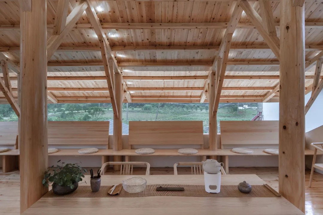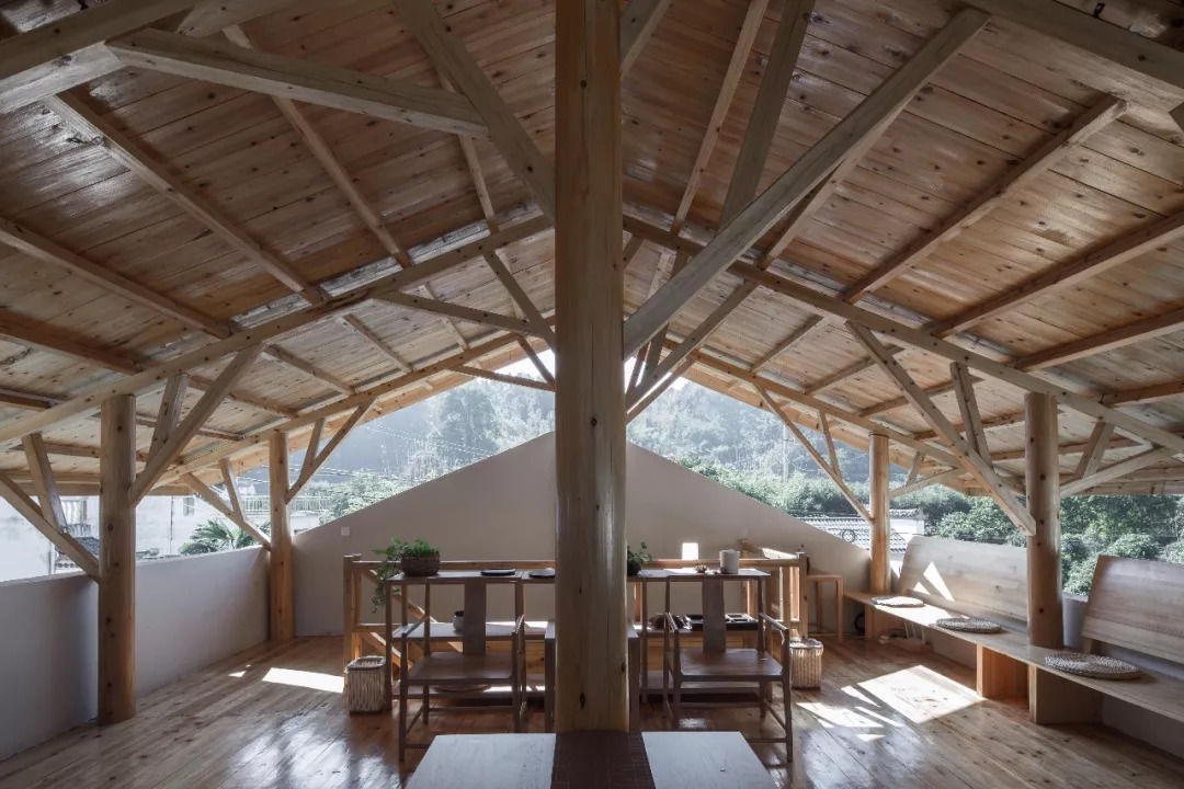 这使得内与外有更多的互动:祠堂、田园、山峦的景观从不同方向涌入内部,村民可以从新的视点欣赏村子熟悉的景观。