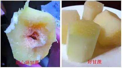 霉变甘蔗外皮无光泽,质地较软,瓤部颜色略深,呈浅棕色,有暗灰色斑点,闻起来有霉味或“酒糟”味。