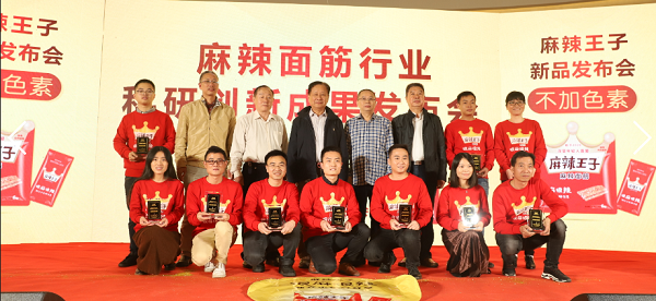 10月13日由湖南省食品科学技术学会、湖南省食品行业联合会联合主办的麻辣面筋行业创新成果发布会暨2018麻辣王子新品发布会在长沙梅溪湖新天地举行。武汉轻工大学教授、中国粮食行业协会小麦分会名誉副理事长李庆龙在活动上介绍了这次面筋行业创新升级的成果:中国地理标志证明商标“平江面筋”的代表、行业领军品牌麻辣王子的产品在取消甜蜜素、安赛蜜等5种化学合成甜味剂的基础上,进一步取消色素,继续引领全省健康面筋行业的发展。为表彰麻辣王子为麻辣面筋食品行业所做的突出贡献,湖南省食品科学技术学会、湖南省食品行业联合会在会上共同授予麻辣王子科研团队“健康面筋贡献奖”的奖项。