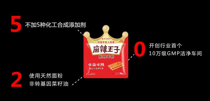 2009年麻辣王子面筋上市以来便一直在不断升级,从原料升级,包装升级,到口味升级,再到不断取消添加剂。