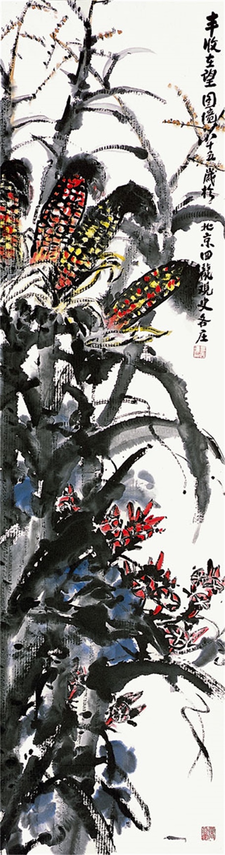 从意境与境界而言,变法后的优秀作品大多流露着灵魂的震颤、精神的渴望,显示着峥嵘岁月与旺盛的活力,寄寓着生命的讴歌与光明的憧憬,那执着而逍遥的精神既潜入花情鸟意又已从一时一地的感受中升华出来,使人感悟,促人奋进。从语言与技巧而论,这些作品虽上承徐渭与石涛以来的“笔墨当随时代”的传统,但亦广采博收,对西方近现代绘画、当代中国名家作品、民间美术,均不无汲取,惟其如此,他的大写意花鸟画比之前人显得更加苍劲、更加拙厚、更加热烈、更加奇谲,也更加抽象意味。