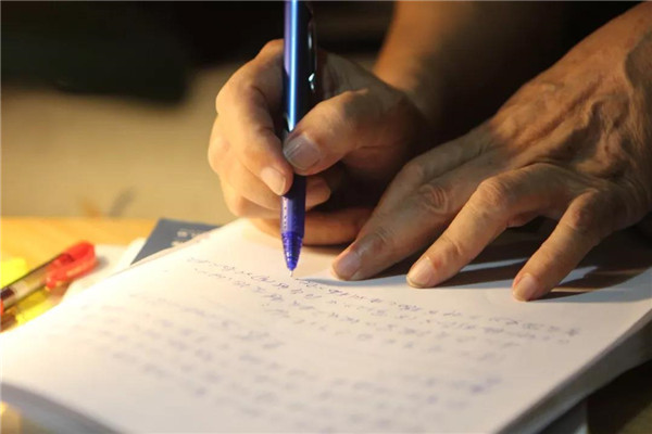 我坐在吴先生坐过的沙发上,轻轻抚摸着那用蓝色圆珠笔写下的文字,想通过这种方式感受吴先生当时的书写状态,感觉这本从广州来的书本是否还残存着潮湿的水汽,我似乎真得感觉到了,只是已无法辨别到底是水汽还是蒸腾的热泪。