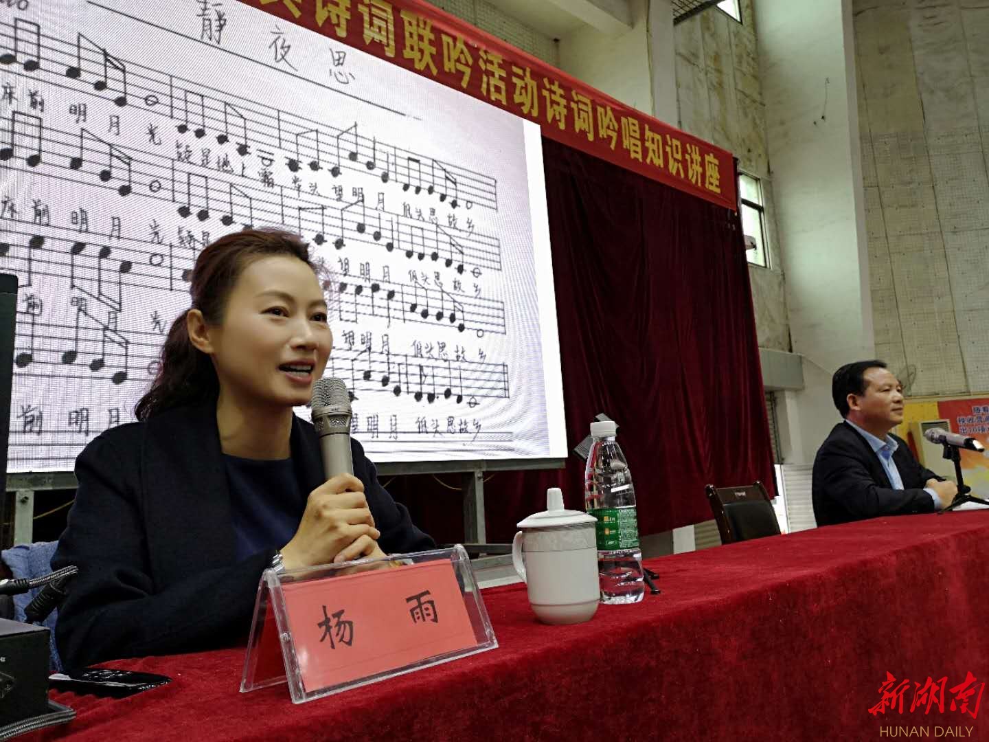 作为本届活动的重要内容之一,活动当天上午,中南大学杨雨教授、台湾辅仁大学孙永忠教授分别在该市第一、二中学举办《时间的流动与生命的律动》《浅吟高歌品味诗词雅韵》的主题讲座,为广大师生诠释古典诗词中的感情和智慧,分享诗词古韵的吟唱技巧。