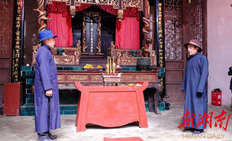 秋风瑟瑟,寒雨纷纷。下午13时,两岸高校师生穿过屈原碑林,来到香草湖畔的屈子祠参加祭屈大典。屈原神位前,祭祀人员肃立以待,钟鼓鸣,唢呐吹,敬上三炷香,洒下一杯酒。随着主祭道士的吟诵祭文之音,传统古代祭祀仪式的壮观场景完整再现。