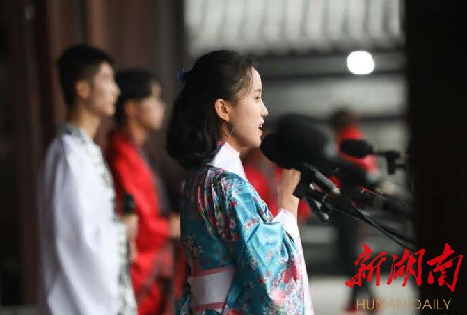 “后皇嘉树,橘徕服兮。受命不迁,生南国兮。深固难徙,更壹志兮。绿叶素荣,纷其可喜兮……”10月21日,汨罗市屈子书院秋雨潇潇、古乐声声,汨罗本土吟唱团以爱国诗人屈原名篇《橘颂》,为第十二届“古韵新妍”两岸青年古典诗词联吟活动暨中南大学“潇湘情·中华韵”吟唱文化节诗意揭幕。