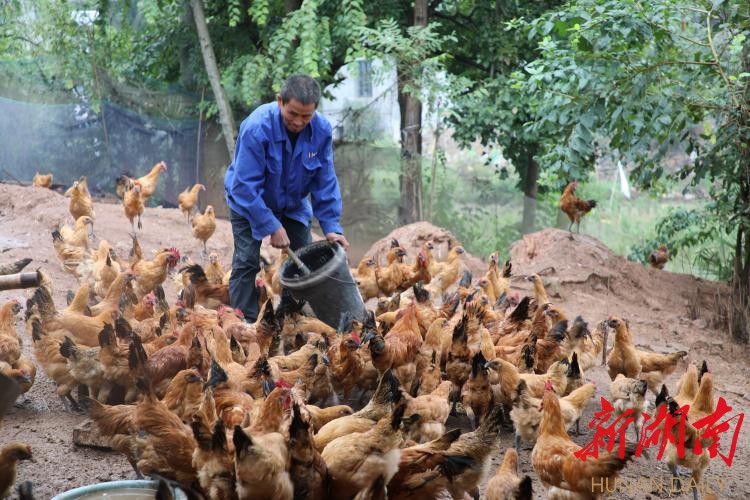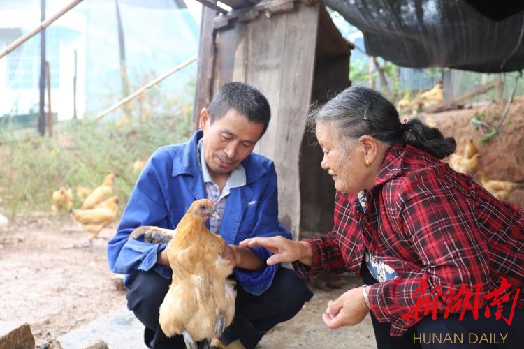今年59岁的杨兴爱,过去常年与妻子在外务工,因身体原因两人只能从事轻体力工作,收入微薄,一家3口因病致贫。2014年,杨兴爱一家被纳入建档立卡贫困户。“等靠要不是办法,自主发展产业才有出路。”2014年,杨兴爱回乡后,在驻村扶贫工作队和村支两委的帮助下,购买了400只鸡苗,摸索发展养殖业。眼见养殖业有了起色,杨兴爱进一步扩大养殖规模。